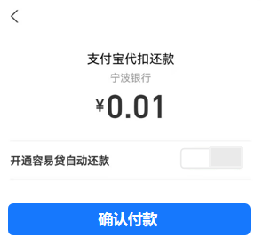 若您的归还金额 ≤ 限额,您可自主选择是否勾选支付宝还款;