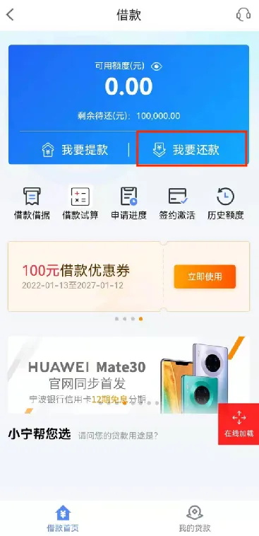 宁波银行app提前还款在哪里