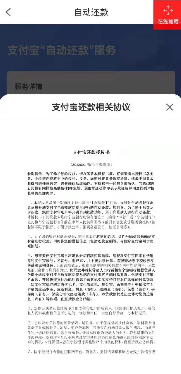 页面展现支付宝支付选项,您可自主选择,勾选后进入支付宝还款流程