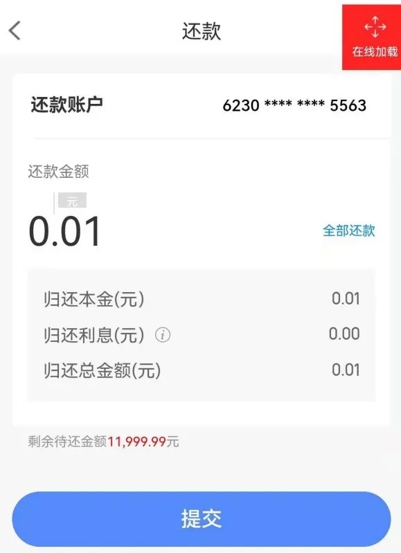 输入还款金额或点击“全部还款”,再点击“提交”