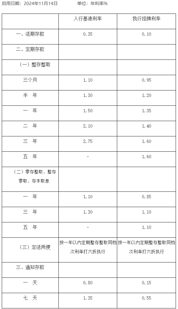 2.存款挂牌利率仅供参考,对具体客户的实际优惠执行利率以我行分支机构或电子渠道最终办理结果为准。详情可询问专属理财经理。