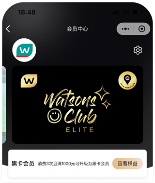 屈臣氏绿卡及黑卡会员每笔消费可获积分,积分可直接抵现当钱花,还可兑换精选大牌权益