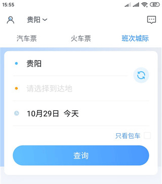 2、输入起始点的目的地信息,用户就可以快速的获取对应的火车票、客车票信息;