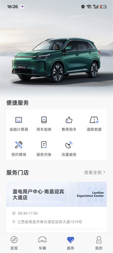 2、在线维保服务、附近门店、道路救援、预约试驾、在线购车。