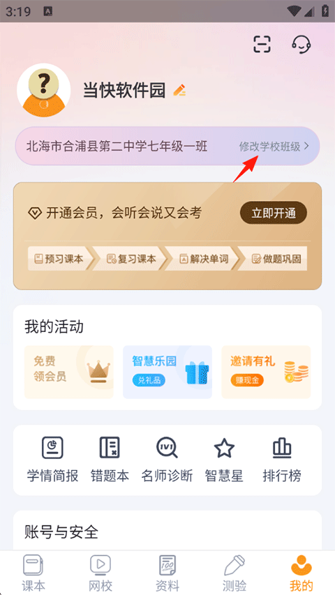 6、最后在我的页面点击修改学习班级可以更换您所在的学校班级,还可以解锁更多服务内容。