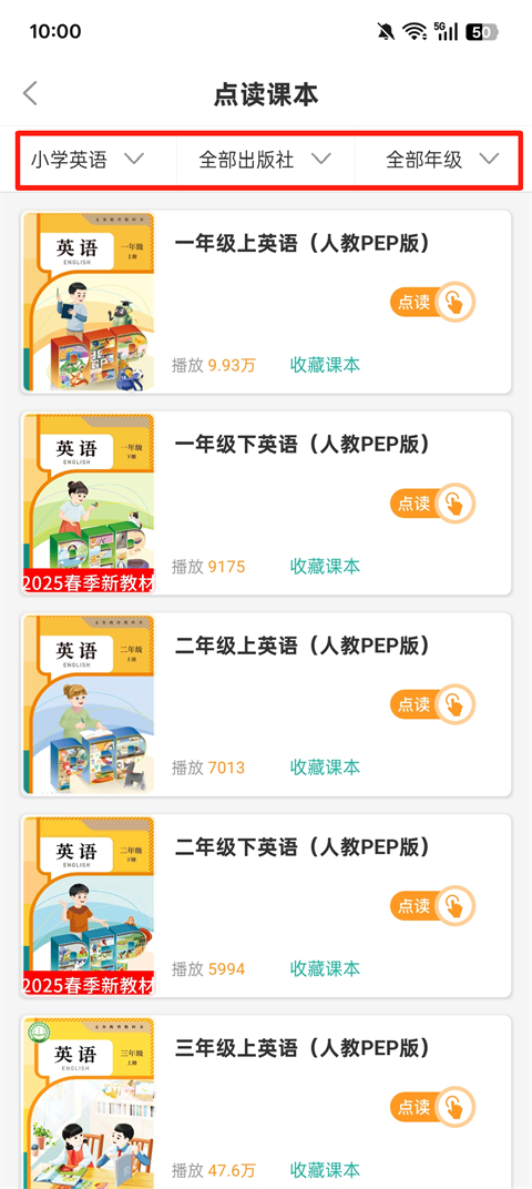 1、打开小学英语同步学软件,登录之后,点击【教材点读】