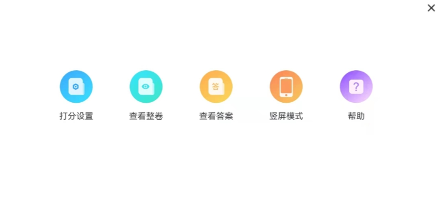 点击右上角的【设置】按钮,可选择不同的设置,包含【打分设置】、【查看整卷】、【查看答案】、【竖屏模式】及【帮助】