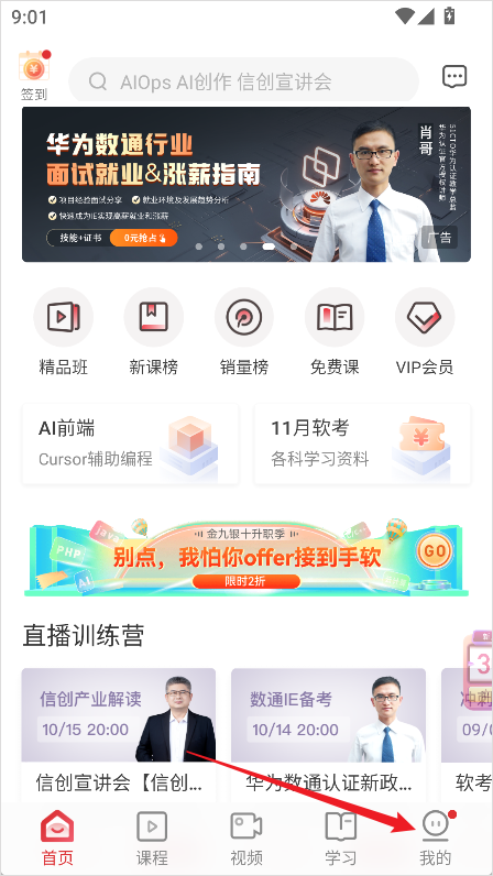 3、进来后平台提供了非常多免费的课程根据自己的需求选择