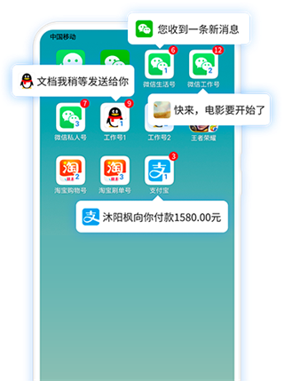多个微信,同时在线独立运行,消息有红点数字标识提醒,重要消息实时提醒不会错过;