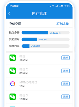 轻松实现手机上面同时开启多个社交账号、游戏账号,十分方便!只需要在一个手机上面实现了,让多开党的生活变得更加简单,我们追求极致的简单,化繁为简的智慧,用户需要的就是我的方向所在,为用户解决繁琐的事情是我们极致的追求。