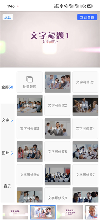 5、进入制作界面后,按照提示批量替换模板中的图片和文字内容,完成个性化修改即可生成属于您的专业视频。