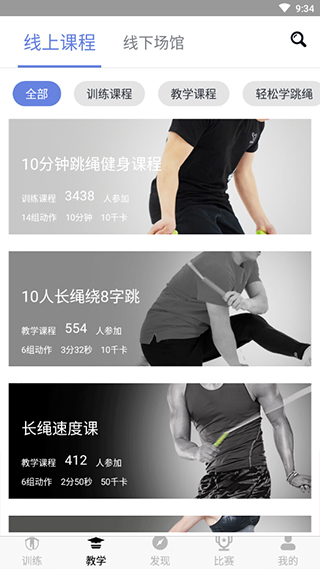 1、完善的教学体系特邀健身达人,跳绳大咖,精心打造健身,训练等精品线上课程满足你的不同学习需求。全国知名规范的跳绳运动馆供你搜索预约,现场体验学习。