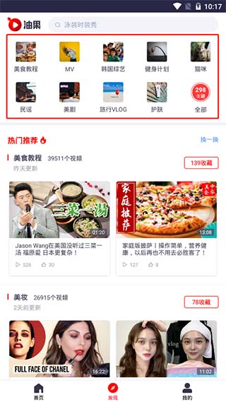4、在发现中有很多的视频主题可以观看哦;