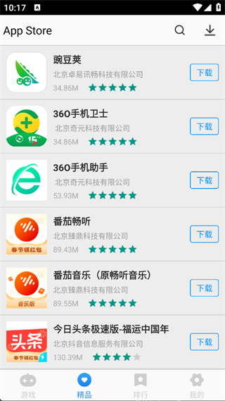 App Store是一款面向安卓用户的综合型应用商店,集应用、游戏下载于一体,内置海量正版资源,覆盖游戏、影音、工具、社交、学习等多个领域。软件支持多线程高速下载并提供清晰的游戏分类、精品推荐、新品榜及热门排行,帮助用户高效发现优质应用,同时配有精选评论内容,兼顾实用性与参考价值,是一款功能完善、体验友好的国内安卓应用分发平台。
