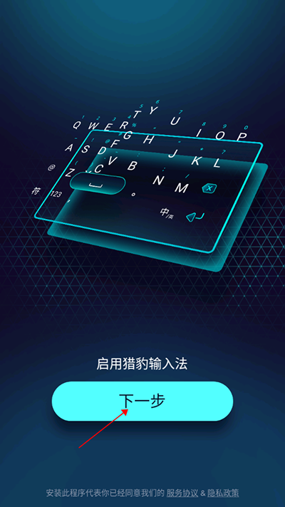 1、其实现在要想设置开启猎豹输入法,用户们需要按照提示点击主页里的“下一步”按钮,然后去手机输入法的页面里进行设置。