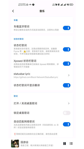 1、自动获取音乐软件当前播放的歌曲,并实时将歌词显示在状态栏 的一款xposed模块