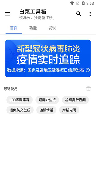 1、在本站下载并安装白菜工具箱app,进入软件首页可以查看app的功能