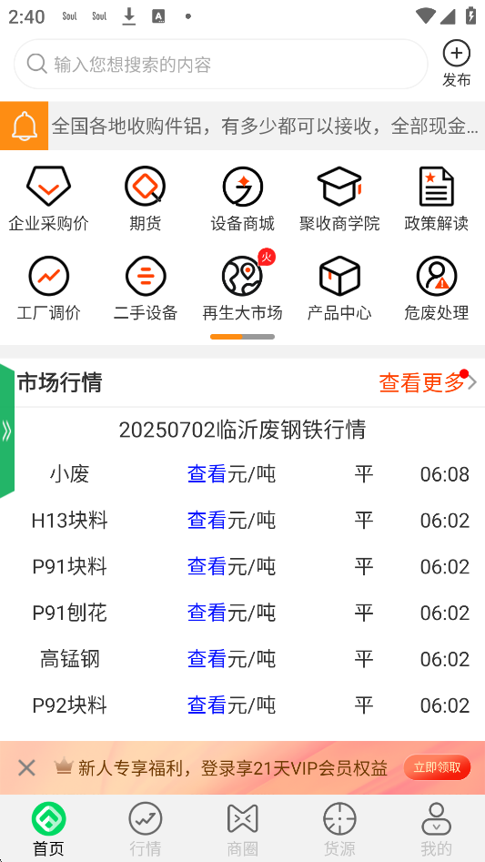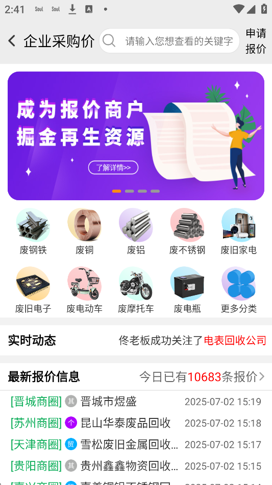 废废App是一个废旧金属及物品回收平台,涵盖全国32个省、50多个再生资源大品类,包括钢铁、有色金属、电子电器、塑料、纸、电缆、设备、再利用材等。软件通过大数据技术,汇聚了全国数万家再生能源企业,将资源整合起来,能够实时监控废旧金属的行情,与再生能源以及金属行业的工厂进行合作,让废旧金属变成有用的金属。废废App还会通过与各地交易平台进行对接,实时发布全国各地区的废金属价格,让用户掌握最新的一手资讯,有需要的朋友欢迎下载使用!
