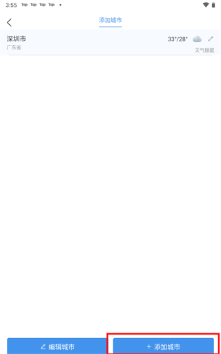 2、点击“添加城市”
