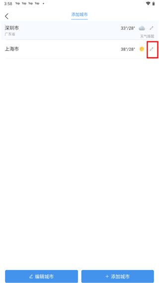 4、点击“编辑城市”可以选择需要提醒的城市