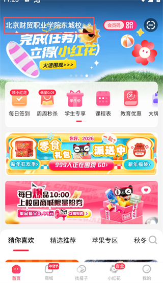 【校园门店优惠多,消费还有小红花】校园门店内丰富的商品和促销活动,满足学生日常消费喜好,每笔消费攒小红花,还能兑换更多超值权益