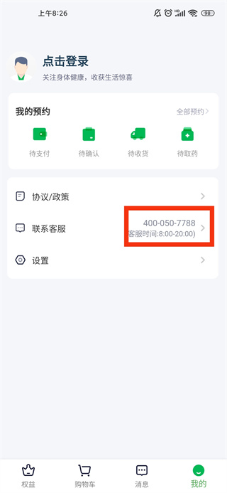 2、找到“联系客服”一栏,拨打电话即可咨询药店入驻事宜。