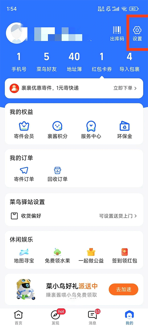 裹酱积分权益随心兑、包裹星球天天领红包、绿色家园公益在身边,更多功能等你来发现!