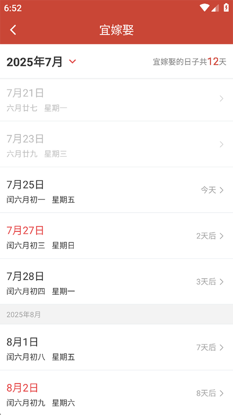 9、下方自动筛选出宜嫁娶的吉日;