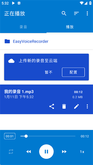 4、切换到【播放】标签页,可看到已保存的录音文件,支持播放、分享、删除、编辑等操作,还能配置云端上传功能。