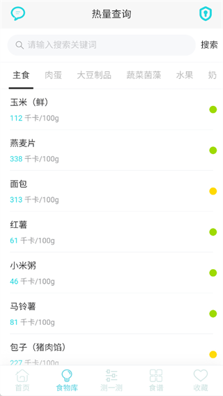 在食物库可以查询各类主食、肉蛋、蔬果的热量,通过颜色标识直观区分高低热量食物,让你轻松避开高热量陷阱。