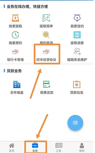 1、在业务模块里点击对冲还贷协议,选择签约&解约