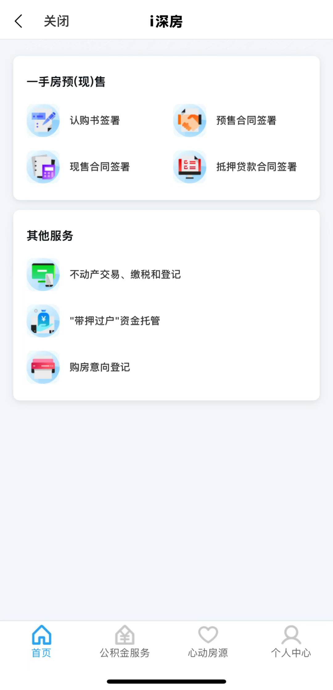 “i深房”平台是集深圳已批售房源项目展示、政策活动资讯查询、住房公积金服务等多功能、一体化的线上服务平台。