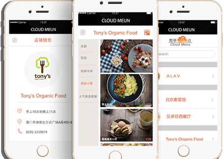简单点点的增值服务 ——“云菜谱”为加盟餐厅定制专属二维码,消费者可以用手机扫描二维码浏览商家信息、菜谱,随时随地浏览菜单,实现“手机浏览、轻松分享”。