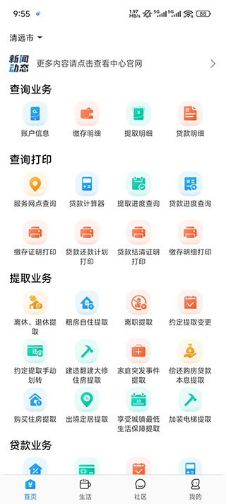 『业务办理』公积金提取、还款、异地转移接续、单位汇缴、中心监管等业务可在手机上一键办理。