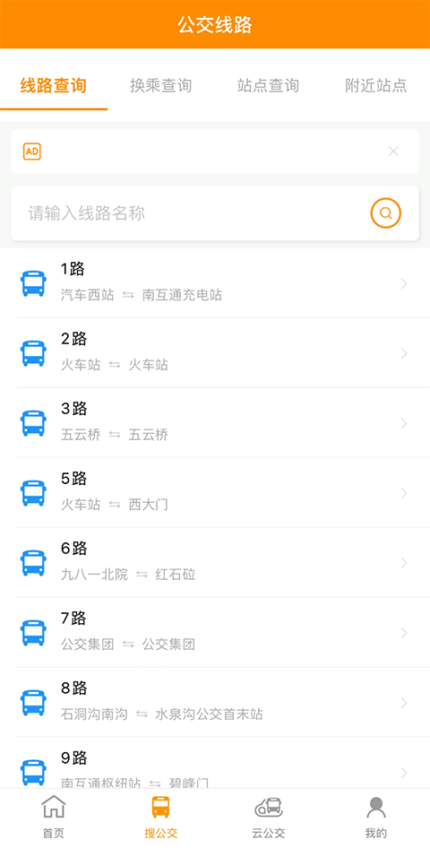 2、在搜索框中,输入线路名称,下方会显示各路公交车的起始站;
