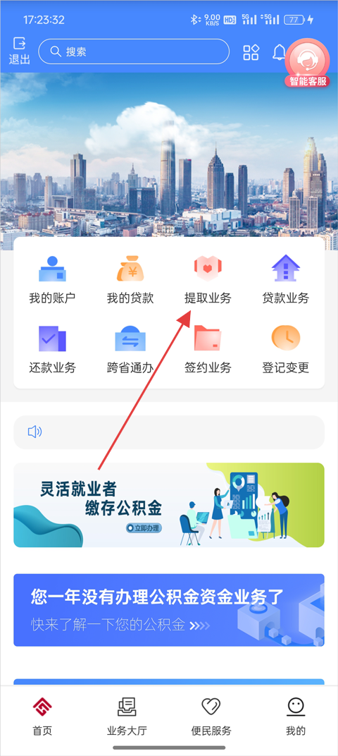 1、在本站下载天津公积金App后,点击首页的提取业务