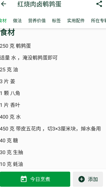 4、向下翻,可以看到做菜需要的材料清单,做法,营养价值等。