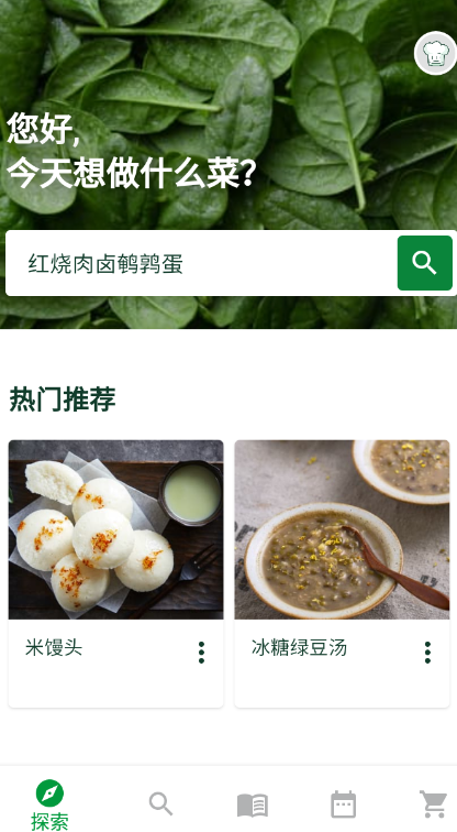 1、用手机号注册登入后,在探索页面点击搜索框可以搜索自己想做的菜。