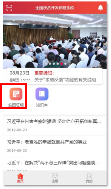 (1)点击首页“贫困证明”图标可以查看或导出贫困人口身份证明。