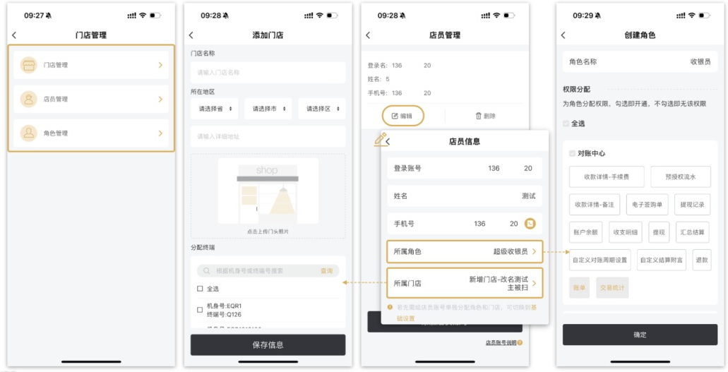 支持创建多个门店并绑定不同收款终端,按门店划分数据权限,确保员工仅查看所属门店交易信息,提升数据安全性与管理精准度。