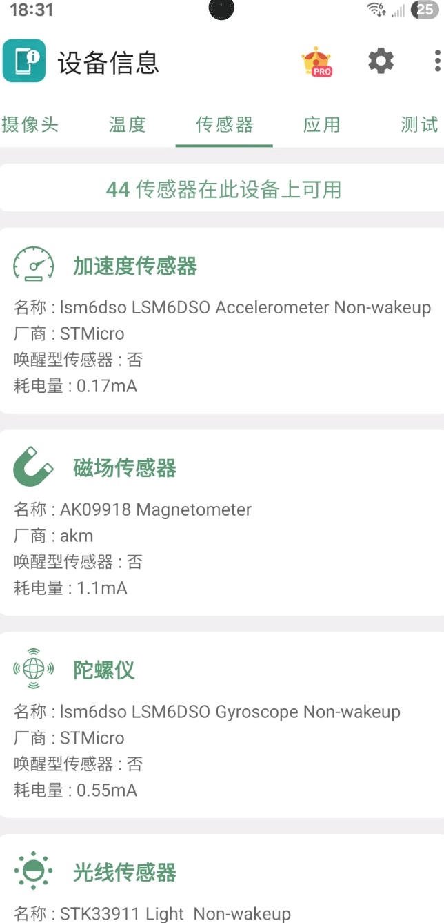 4、内置传感器;查看传感器和实时数据。