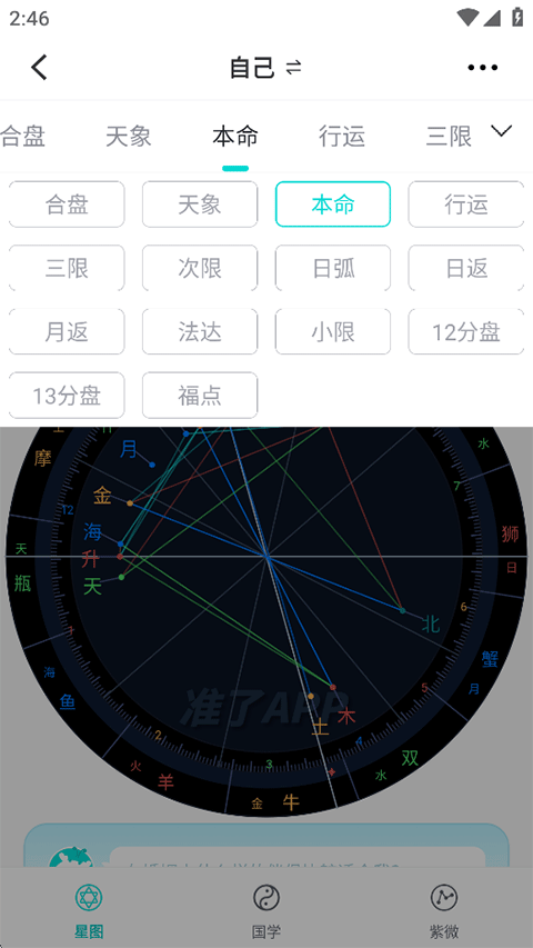 输入出生时间即可快速计算您的准确星座,并为您绘制出个人星盘,十分方便,配合星盘解读,让您对自己的星座详细了解,各种参数在线展示一目了然。