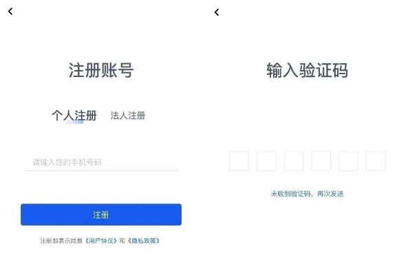 2.打开APP,点击注册账号,注册时输入手机号码并填写接收到的验证码,验证通过后设置密码,密码长度为8-18位字符,必须为数字、大小写字母、其他字符的3种以上组合。