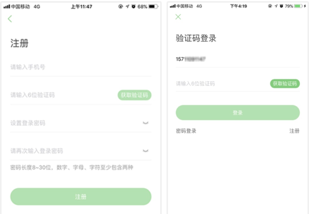 输入手机号并通过手机短信验证完成用户快速注册。