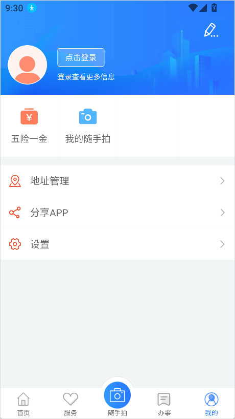 服务模块涵盖了交通出行、政务服务、五险一金、不动产等民生功能。
