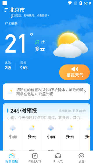 多多天气app是一款功能强大的天气预报软件,能够精确预测下雨、下雪的时间和地点,覆盖范围广泛,包括乡村和县城等地方。这款软件不仅提供了实时的天气预报信息,还提供了24小时的天气预报以及未来45天的天气预报,让您随时掌握天气变化。除了基本的天气预报功能外,多多天气预报还提供了一系列的生活指数,涵盖了穿衣、洗车、紫外线、感冒、运动、旅游等方面。这些生活指数可以帮助您更好地规划日常生活,提供实用的建议和指导。为了让用户更方便地获取天气预报信息,多多天气预报还支持智能语音播报功能。您可以随时随地通过语音指令获取天气情况,无需手动查看手机屏幕,更加便捷实用。