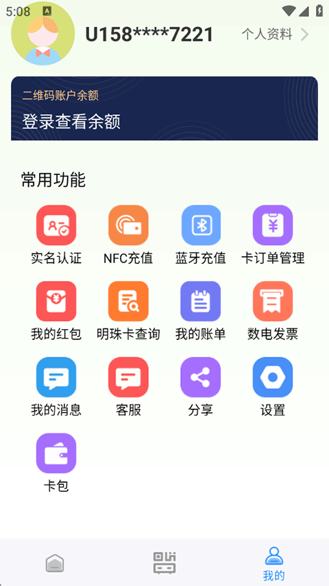 4、点击我的登录账号后可查看二维码账户余额以及其他更多服务内容。