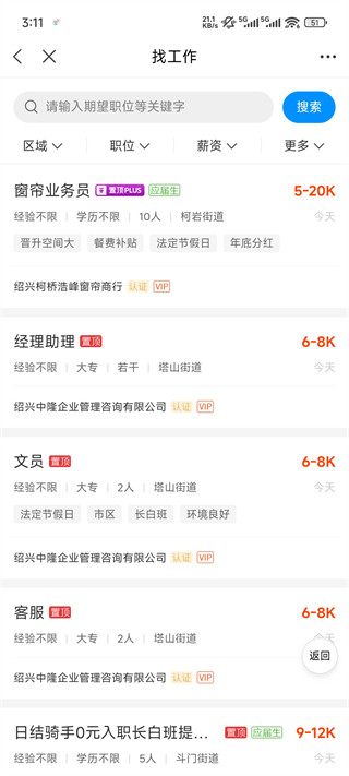 2、这里你可以搜索期望职位/企业或者点击全部职位进行查看