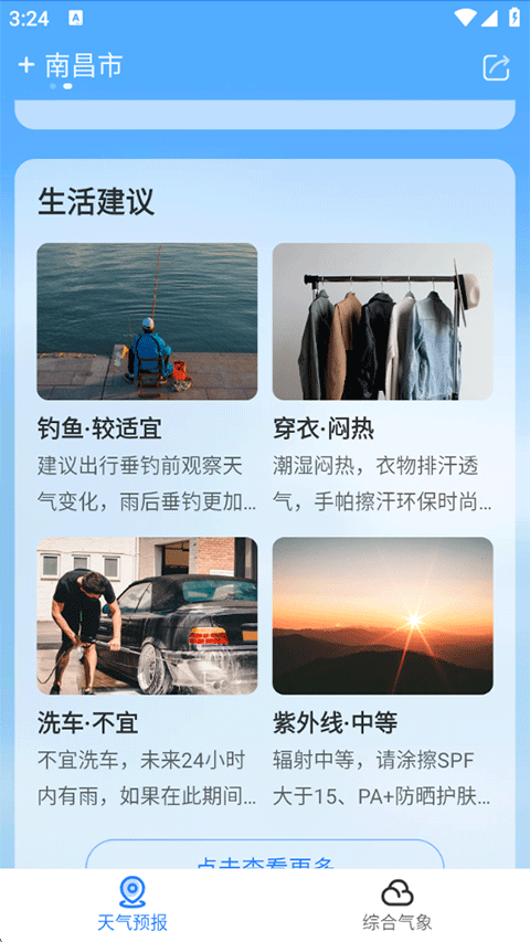 4、往下滑动,即刻天气还提供了众多对您生活出行工作有帮助的各种生活建议;