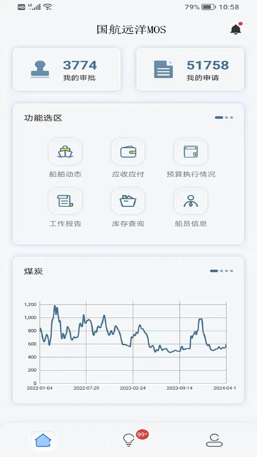 国航远洋移动航运管理系统由福建国航远洋运输集团自主研发,是一款集航运业务管理、船舶动态监控、船员信息、证书管理、库存管理、财务结算及工作报告于一体的移动端综合管理系统App。系统通过移动化操作与实时数据同步,使船务管理、总部调度和审批流程实现高效化。内置图形化报表和统计分析工具,为管理者提供清晰可视化的数据决策支持,同时支持权限分级与数据加密,保障企业核心信息安全。